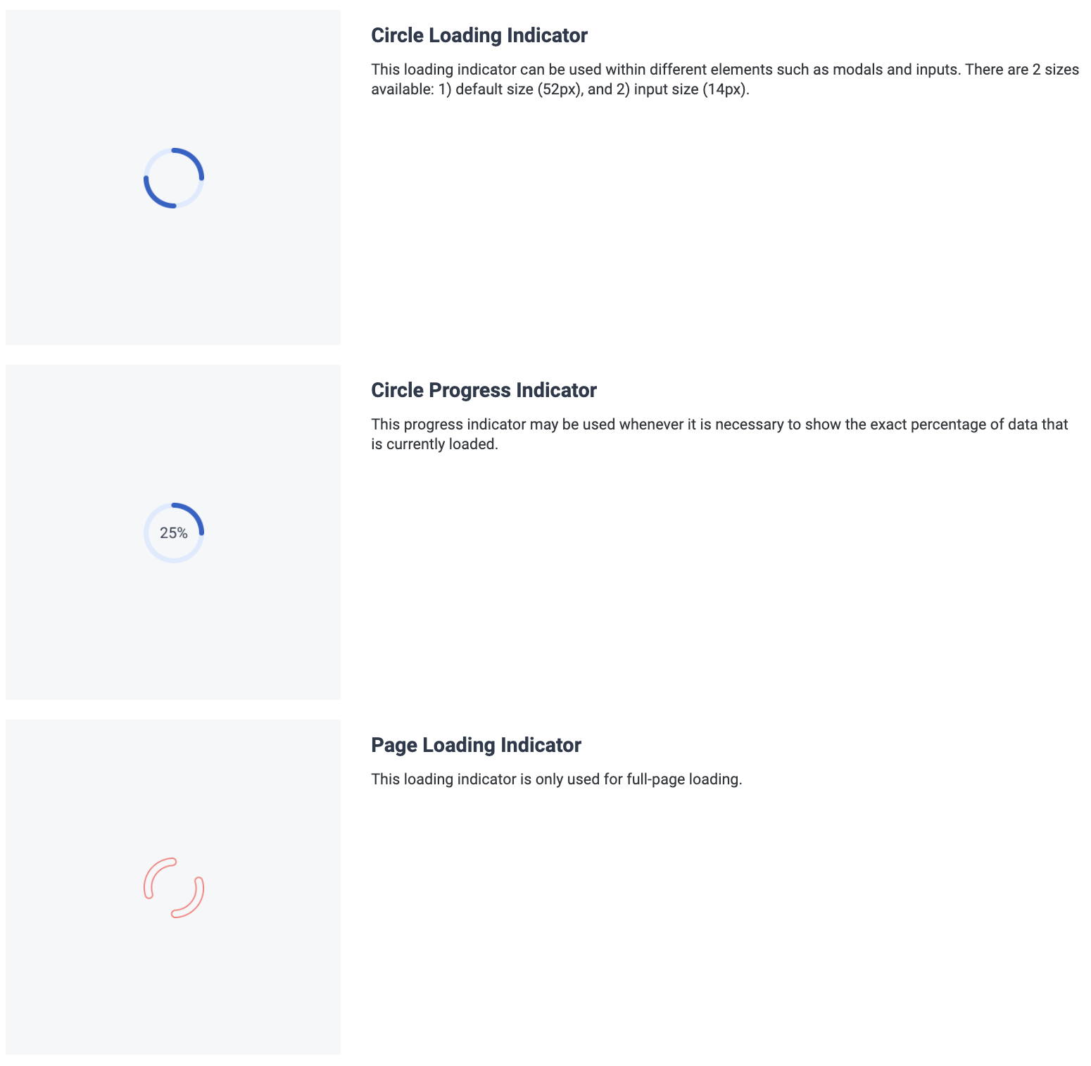 View the Web Component Library for live examples. Progress and loading indicators have pre-defined animations that loop until the data is finished loading.